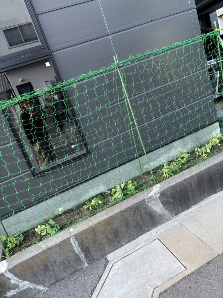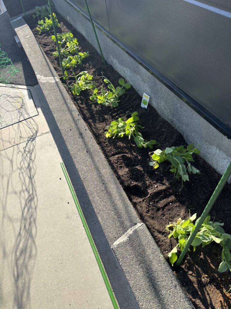 可憐な花を咲かせてくれたチューリップから、スナップエンドウへ植え替えをしました。